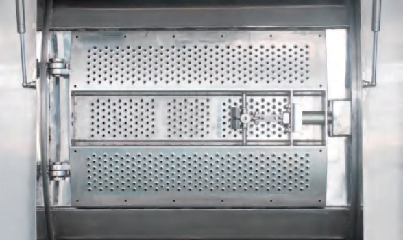 Дверь изготовлена из нержавеющей стали 304 и оснащена предохранительным замком и системой управления блокировкой. Эта система обеспечивает надежную защиту: дверцу невозможно открыть во время работы машины, а машину нельзя запустить, если дверца не закрыта должным образом. Кроме того, когда одна боковая дверь открыта, другая сторона остается запертой для обеспечения изоляции.